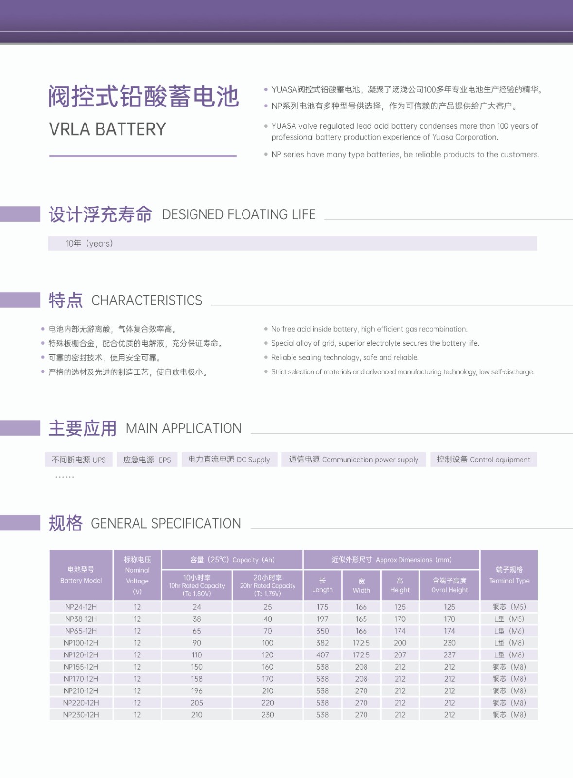 ● 特殊板栅合金,合适的电解液比重,充分保证寿命。